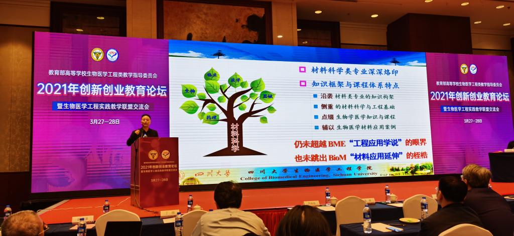 在报告中,尹光福教授结合在生物医学材料方向数十年的一线教学经历、在全国兄弟高校的调研心得、以及与多位教指委委员、企业专家的深入交流经验,对生物医学工程BME(生物材料类)专业的现状进行了深刻反思、并对生物材料方向人才培养体系的知识结构重塑进行了全新阐述。