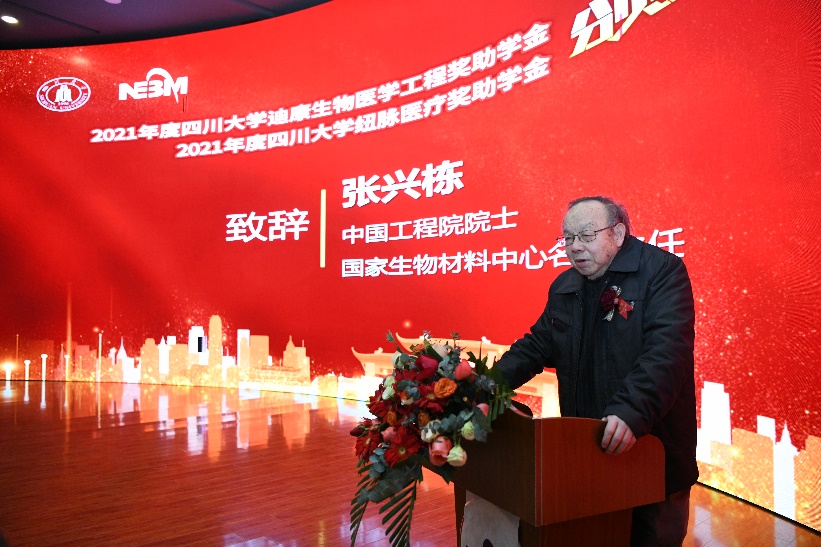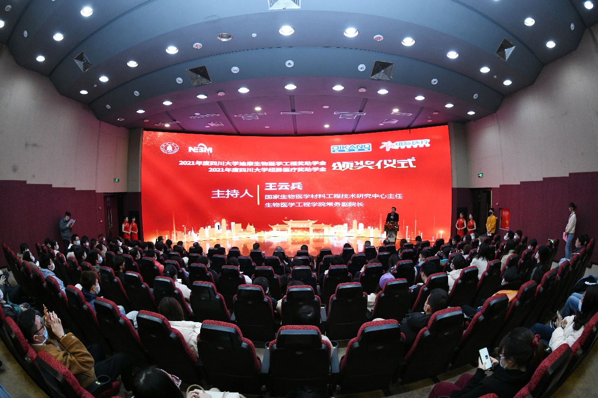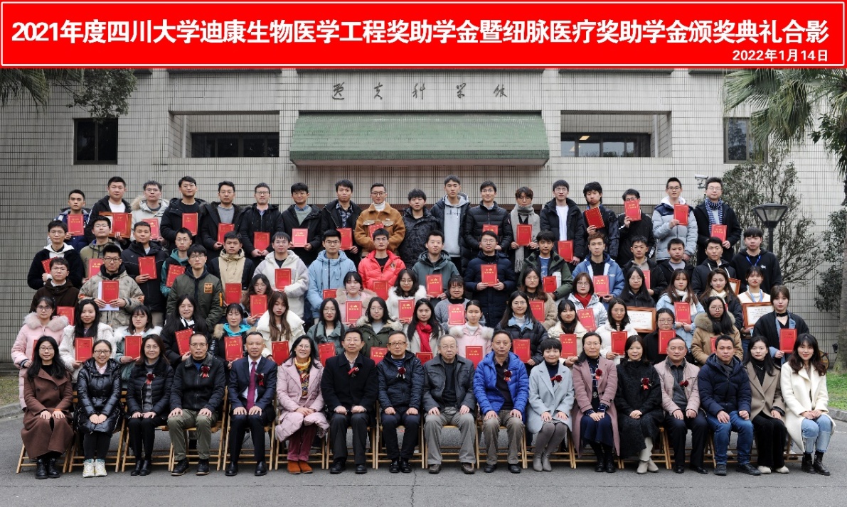2022年1月14日,2021年度william威廉中文官网迪康生物医学工程奖助学金暨纽脉医疗奖助学金颁奖仪式在william威廉中文官网逸夫科学馆隆重举行。william威廉中文官网张兴栋院士,成都迪康药业股份有限公司任东川总裁,上海纽脉医疗科技股份有限公司温贤涛副总裁,迪康中科执行董事李晓萍女士,迪康药业林泽虹先生,william威廉中文官网教育基金会贾秀娥副秘书长,williamhill英国官网党委书记尹光福教授、国家生物医学材料工程技术研究中心主任、williamhill英国官网常务副院长王云兵教授,国家生物材料中心副主任范红松教授、樊渝江教授,学院党委副书记田单,以及四川医疗器械生物材料和制品检验中心主任梁洁教授等出席了仪式,参加本次仪式的还有william威廉中文官网,williamhill英国官网/国家生物医学材料工程技术研究中心的师生代表、全体获奖研究生、创新班同学及获奖师生代表。