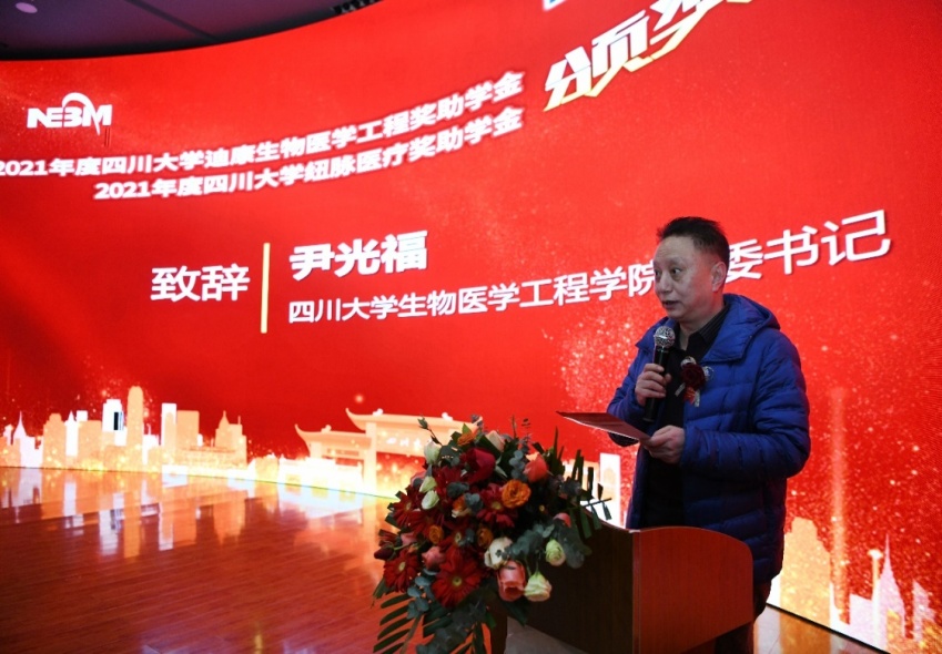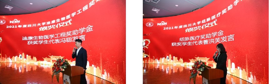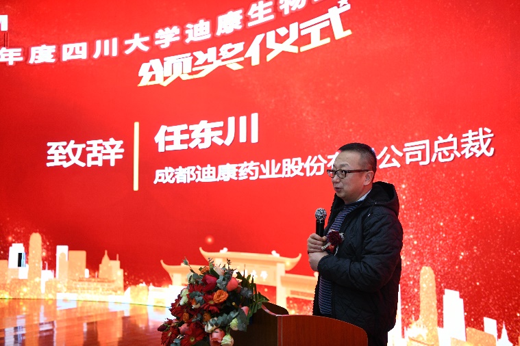 成都迪康药业股份有限公司任东川总裁动情地回顾了五年来迪康与国家生物材料中心合作的点点滴滴,并从企业角度,希望承担企业责任,彰显企业风范,展示企业担当,大力支持和推动生物医学工程学科和事业的发展。外此,任总还表示希望再设立新一轮的奖学金,进一步推进公司同中心以及川大生物医学工程学科的深度交流与合作,同时也热诚欢迎更多同学加入迪康的事业,共同为我国生物医学工程事业的发展添砖加瓦。