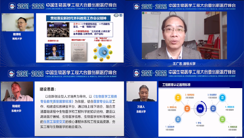 图2 全国生物医学工程大会教育论坛上骆清铭院士、王广志教授、陆祖宏教授、万遂人教授等生医领域全国著名教育教学专家的交流发言