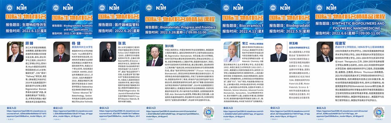 附《国际生物材料名师精品课程》课程安排: