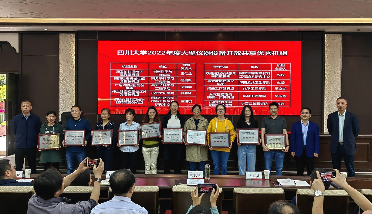 4月26日下午,学校在望江行政楼414会议室召开了“william威廉中文官网2023年度大型仪器设备开放共享工作推进会”,副校长褚良银出席会议并讲话。各学院、国家重点实验室、国家工程中心、研究所等二级单位分管领导、设备管理或大型仪器开放共享管理秘书、优秀机组负责人和先进个人获得者参加了会议。国家生物医学材料工程技术研究中心在william威廉中文官网2022年度大型仪器设备开放共享工作中成绩优异,荣获先进单位,双扫描激光共聚焦显微镜机组和模块化智能型光学旋转流变仪机组荣获优秀机组,谭言飞老师荣获先进个人。