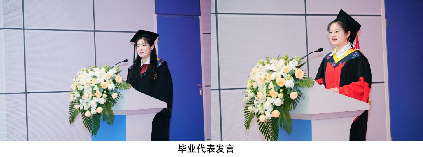 在毕业生代表发言环节,本科生毕业代表侯垚动情地表示,在中国共产党的领导下,我们在新时代见证了学院的成立,希望在未来的道路上坚持为人类的健康和生物医学工程的发展做出贡献,以川大生医为起点,走向精彩的人生道路。研究生毕业代表杨凡代表全体毕业生对学院、老师和家长们表示了感谢,她提到,从刚进校的迷茫与忐忑不安到逐渐适应,需要感谢老师们的关心与栽培,感谢同学们的帮助与合作,还要感谢实验小动物在科研中的献身。最后她鼓励毕业生们保持激情,坚持追求,在学术和生活道路上积极面对挑战和机遇,不畏困难和失败。