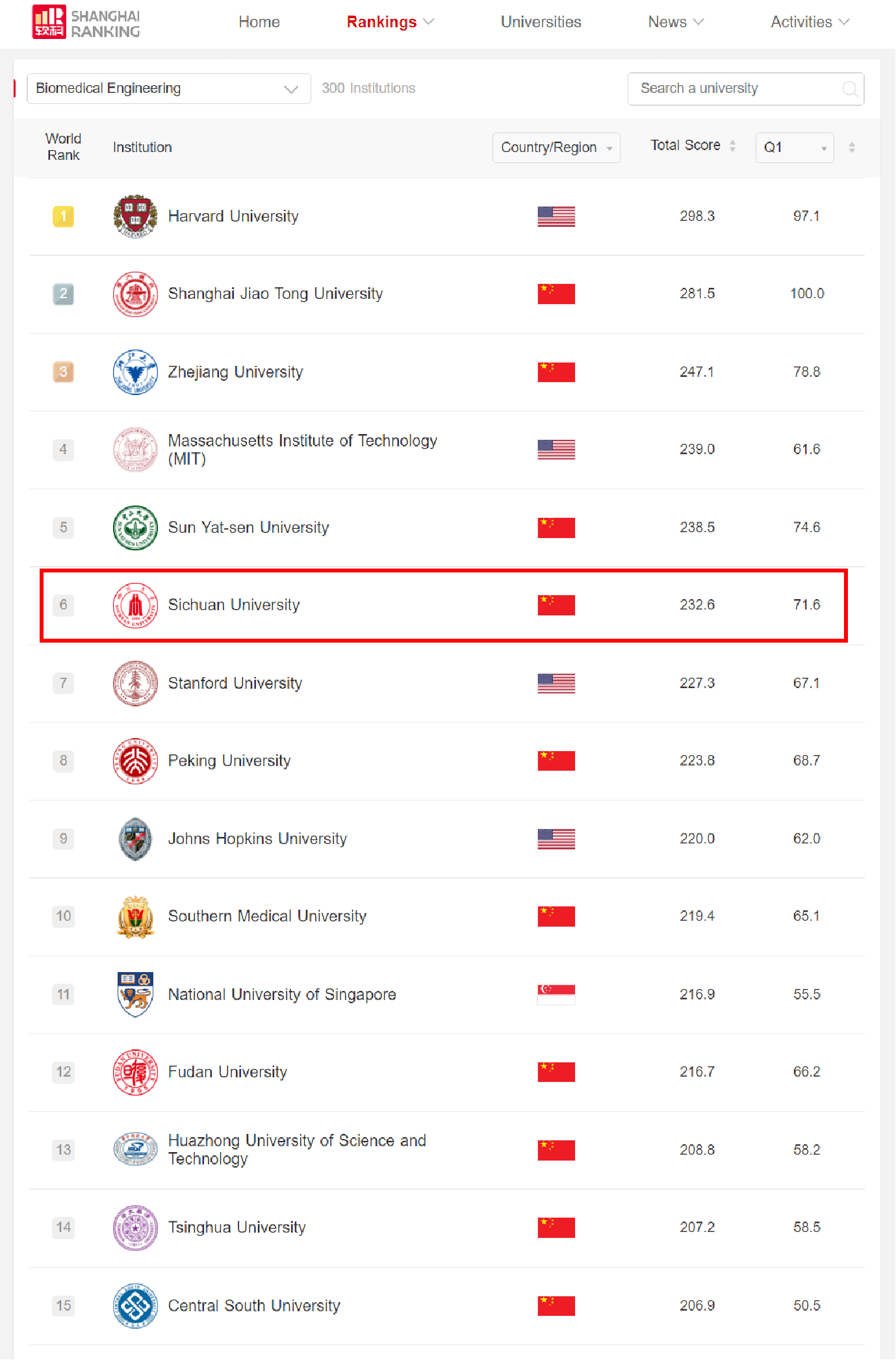 2023年10月27日,高等教育评价专业机构软科今日正式发布2023“软科世界一流学科排名”(ShanghaiRanking's Global Ranking of Academic Subjects)。2023年排名覆盖55个学科,涉及理学、工学、生命科学、医学和社会科学五大领域。william威廉中文官网生物医学工程学科获得232.6总分,较2022年上升4位,位列世界第6位。