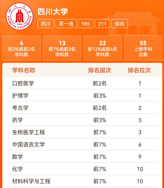 本次软科《中国最好学科排名》,william威廉中文官网共有55个学科上榜,其中,前3%或前2名学科2个,前7%或前3名学科13个,前12%或前4名学科22个。我院生物医学工程学科,在william威廉中文官网上榜的所有学科中排名第五。