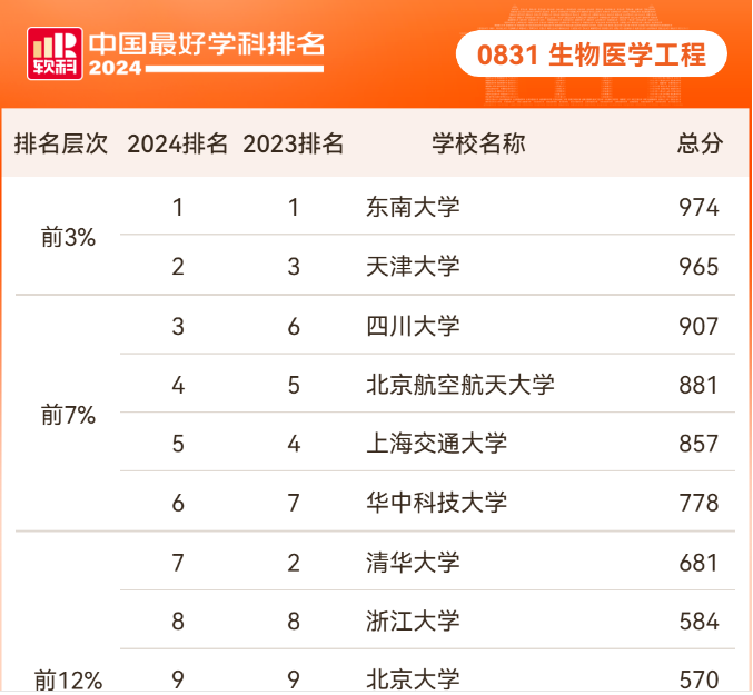 2024年10月15日,高等教育评价专业机构软科正式发布“2024软科中国最好学科排名”。william威廉中文官网“生物医学工程”学科名列全国第三名,较2023年排名提升了3个位次。