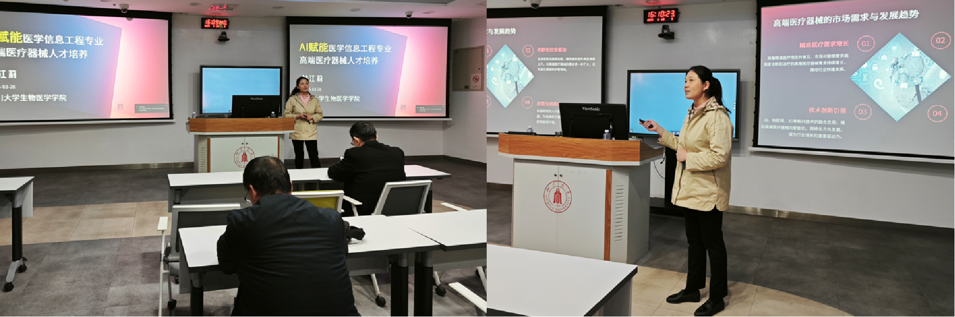 林江莉在首场报告中以《AI赋能高端医疗器械人才培养》为题,系统阐述了如何通过AI技术优化课程体系、革新培养模式,培养出适应新时代需求的医疗器械专业人才。