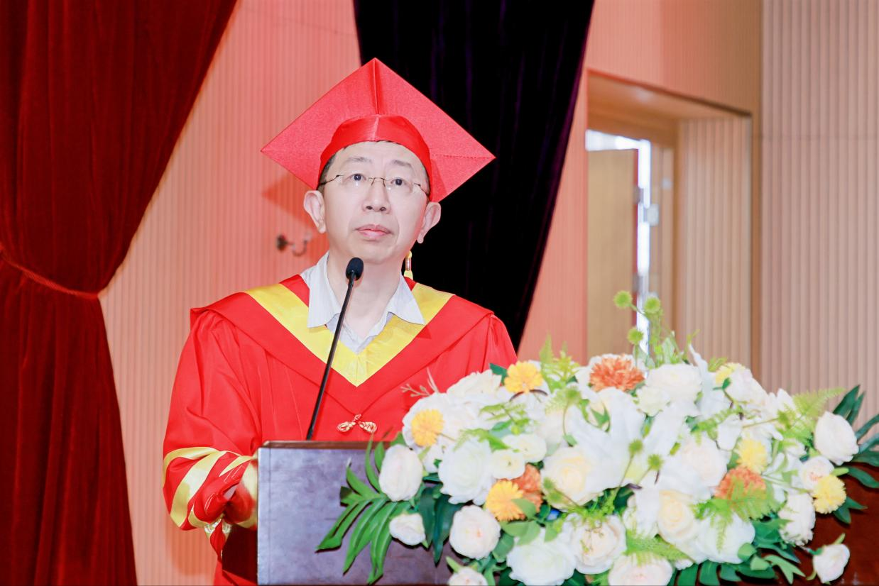 王云兵代表学院在毕业典礼上对全院2024届毕业生致以最诚挚的祝贺和最美好的祝愿,并向全院毕业生提出四点期望:一是厚植家国情怀,勇担时代使命。希望同学们以张兴栋院士等前辈科学家为榜样,将个人理想融入国家发展大局,在推动人类健康事业过程中实现人生价值;二是坚守科研初心,永葆创新锐气。面对机遇与挑战,既要珍惜学院创造的优质平台,更要以“十年磨一剑”的定力攻坚克难,用勤奋与智慧书写科技报国的青春答卷;三是涵养阳光心态,拥抱多彩人生。希望同学们在追求卓越的同时,保持对生活的热爱与从容,在快节奏的时代中修炼身心、平衡成长;四是秉持感恩之心,践行责任担当。无论身处何方,都要以谦逊姿态回馈社会,在共享成果中传递温暖,让科技之光照亮更多生命。王云兵勉励全院毕业生在今后的日子里能够勇立潮头,以今日之耕耘,铸明日之辉煌!