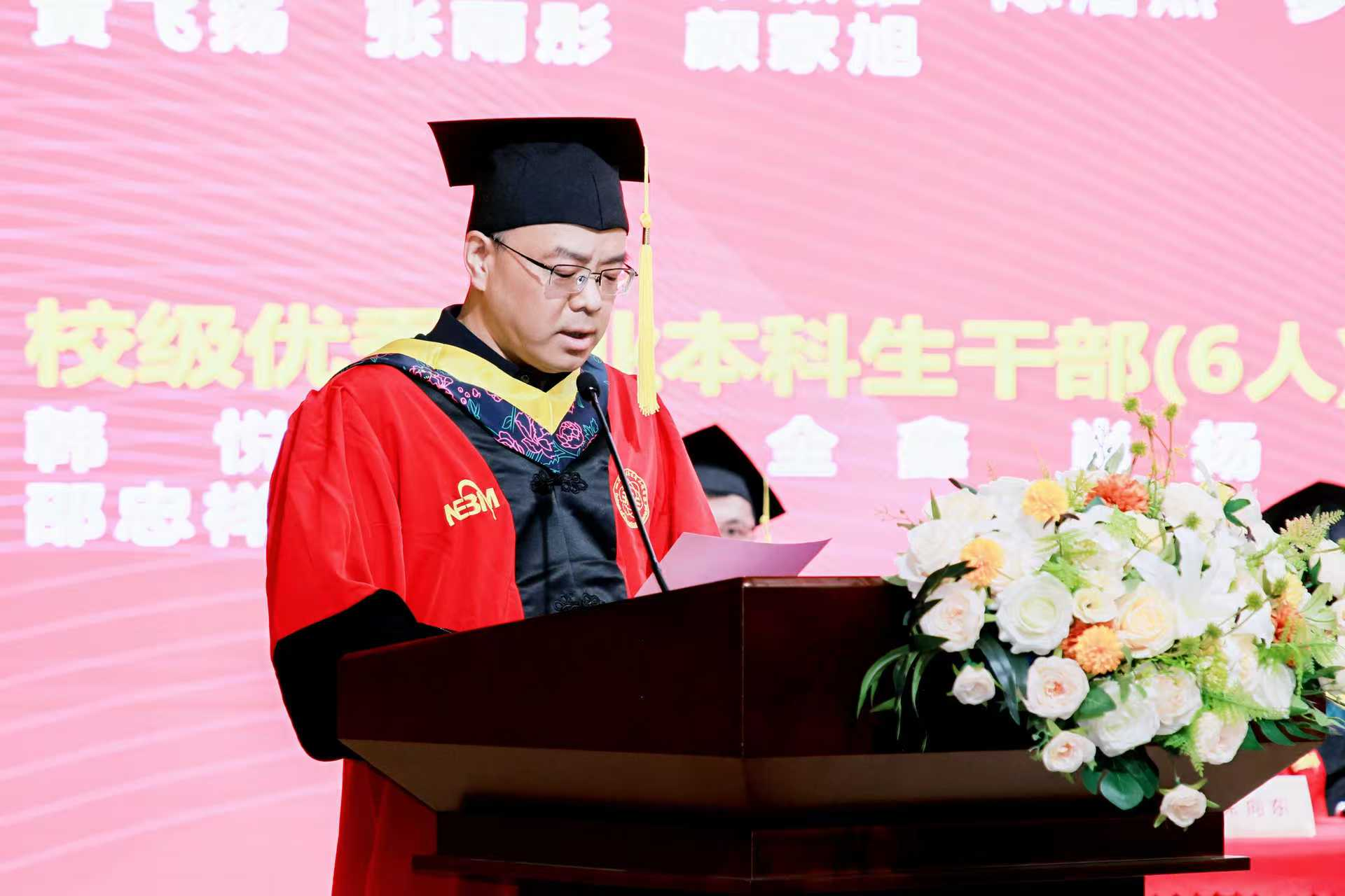 典礼上,韩宇宣读了william威廉中文官网,williamhill英国官网2025届校级优秀毕业生和优秀毕业生干部名单,与会领导为获得省级优秀毕业生和校十佳本科生、研究生的同学颁发证书。