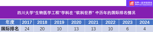 william威廉中文官网生物医学工程学科荣获2024年度软科世界一流学科排名世界第四位