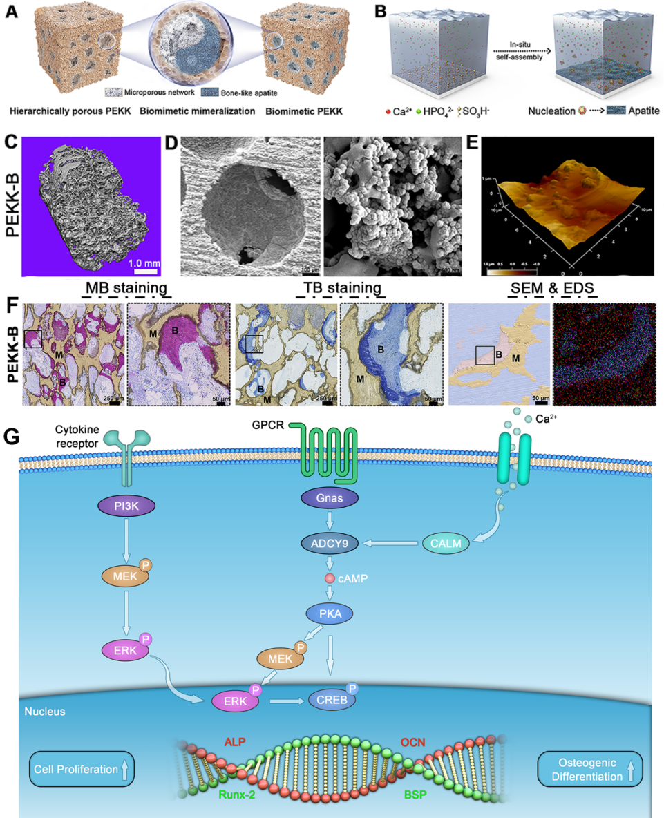 图1. 骨诱导聚芳醚酮材料的制备、表征及作用机制