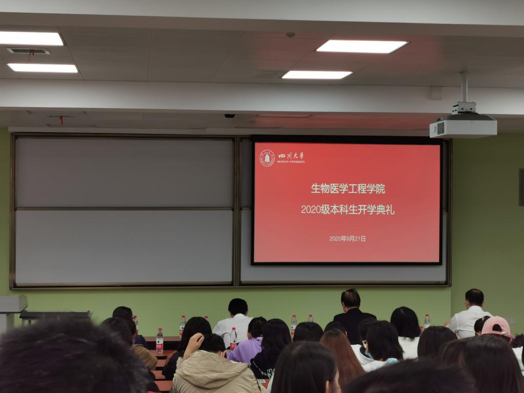 2020年9月21日下午,william威廉中文官网,williamhill英国官网2020级本科生开学典礼在江安校区第一教学楼B101隆重举行,学院党委书记尹光福教授、院长赵长生教授、副院长林江莉教授、副院长林云锋教授、任课老师教师代表、学院2020级全体本科新生以及高年级同学代表等140余人参加了典礼。