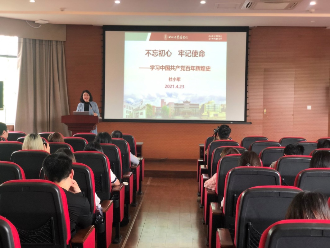 活动的第二阶段,工学图书馆党支部支部书记、图书馆副馆长杜小军主讲了专题党课“不忘初心 牢记使命——学习中国共产党百年辉煌史”。党课从“为什么学习中国共产党党史”的问题出发,深入浅出地理清了党史的基本脉络,讲述了“四史”逻辑关系,重点强调了中国共产党的基本经验与规律。她激励在座的青年学子,从党史学习中汲取成长智慧与力量,坚定理想信念,明确使命担当,投身全面建设社会主义现代化国家新征程。