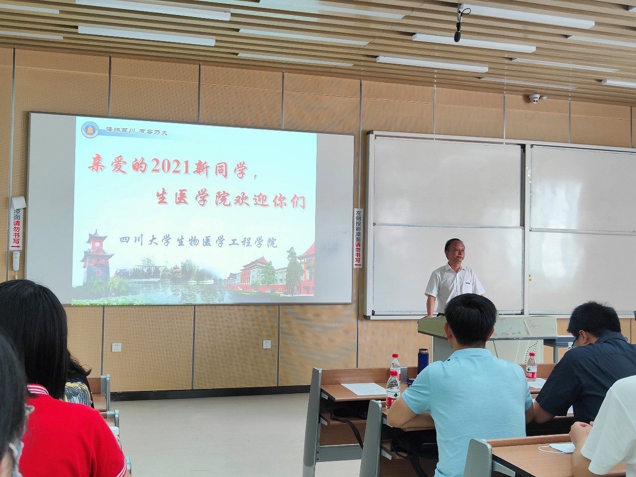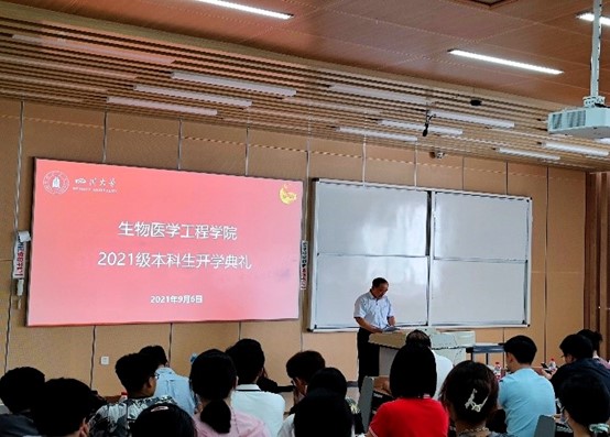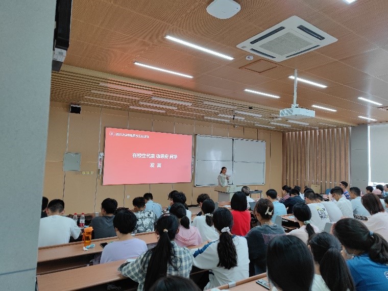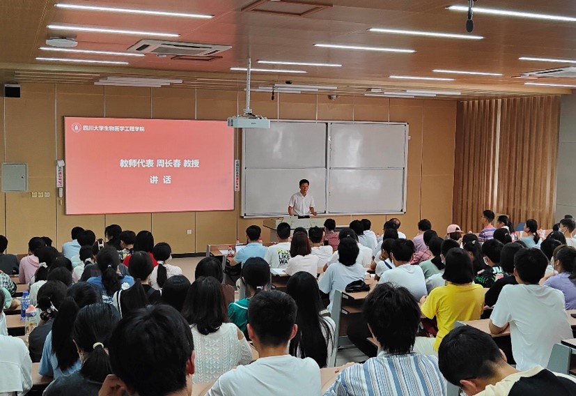 接着,教师代表周长春教授发言,他介绍了本专业的交叉融合的特性,鼓励同学们积极参加学术交流活动,拓宽眼界,主动学习,争做一名优秀的生医人。随后,在校学生代表徐思安同学和新生代表卞之润同学先后发言,他们从自己的角度出发,讲述自己对大学学习的期望和理解。