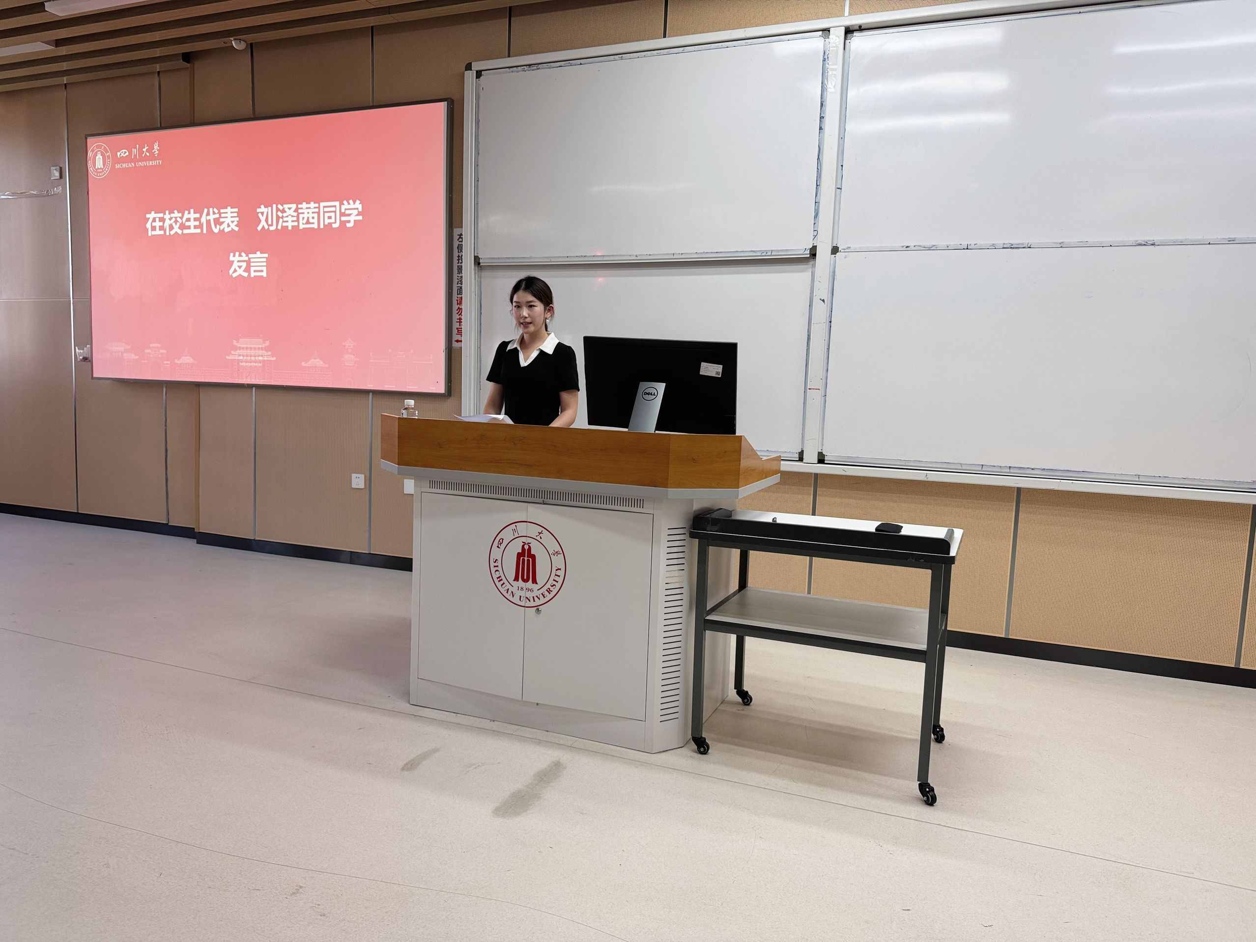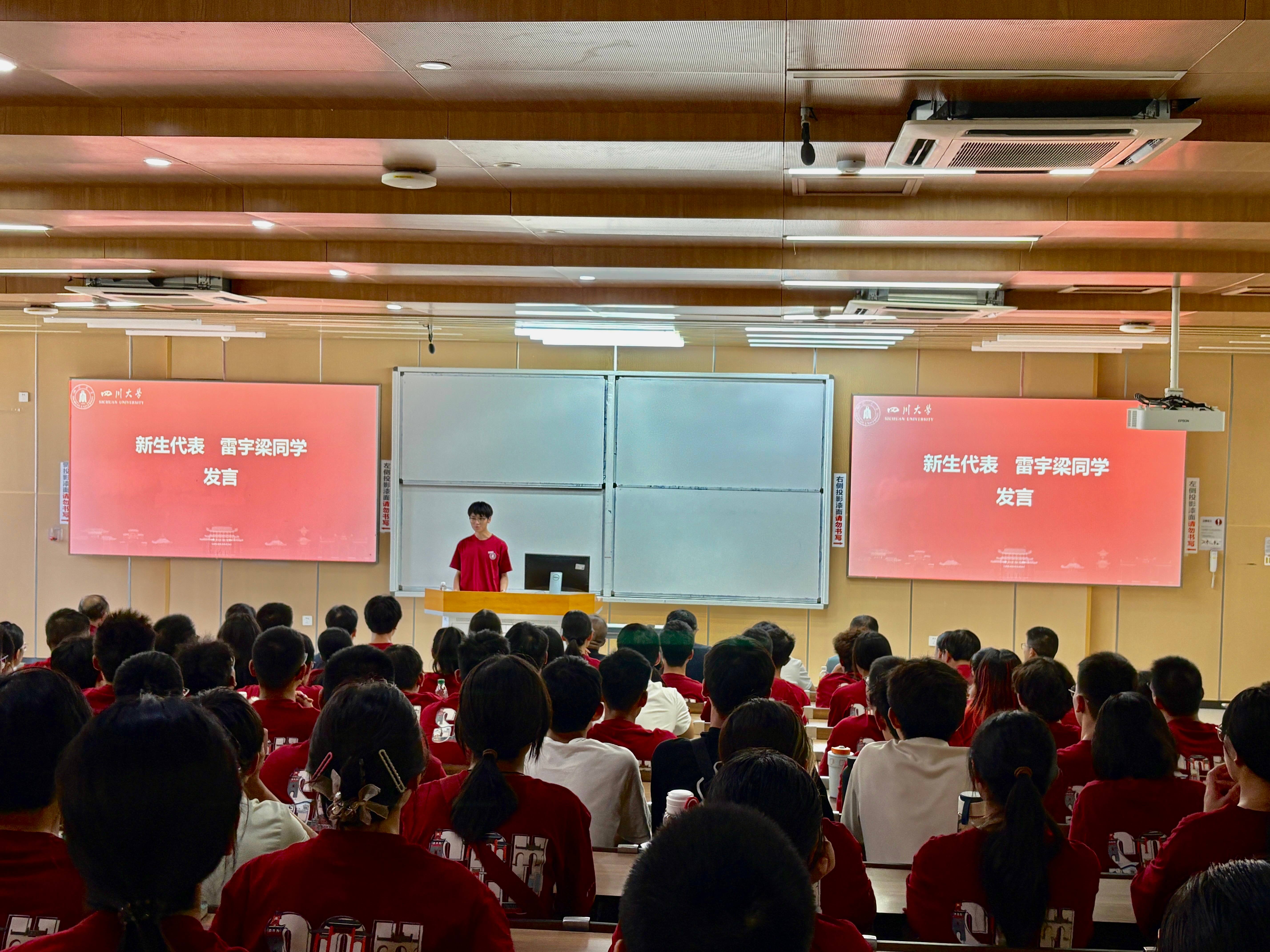 2024级生物医学工程专业学生刘泽茜作为在校生代表发言。她以“勇敢迎接人生中的第一次”为题,从学习生活两方面分享自身成长经历并鼓励新生正视“第一次”的挑战,扎实专业基础、平衡学习生活。她最后结合我校校训“海纳百川,有容乃大”寄语新生,愿其兼具川大人的视野与勇气,生医人的严谨与创新,在这里创造下一个伟大的“第一次”。