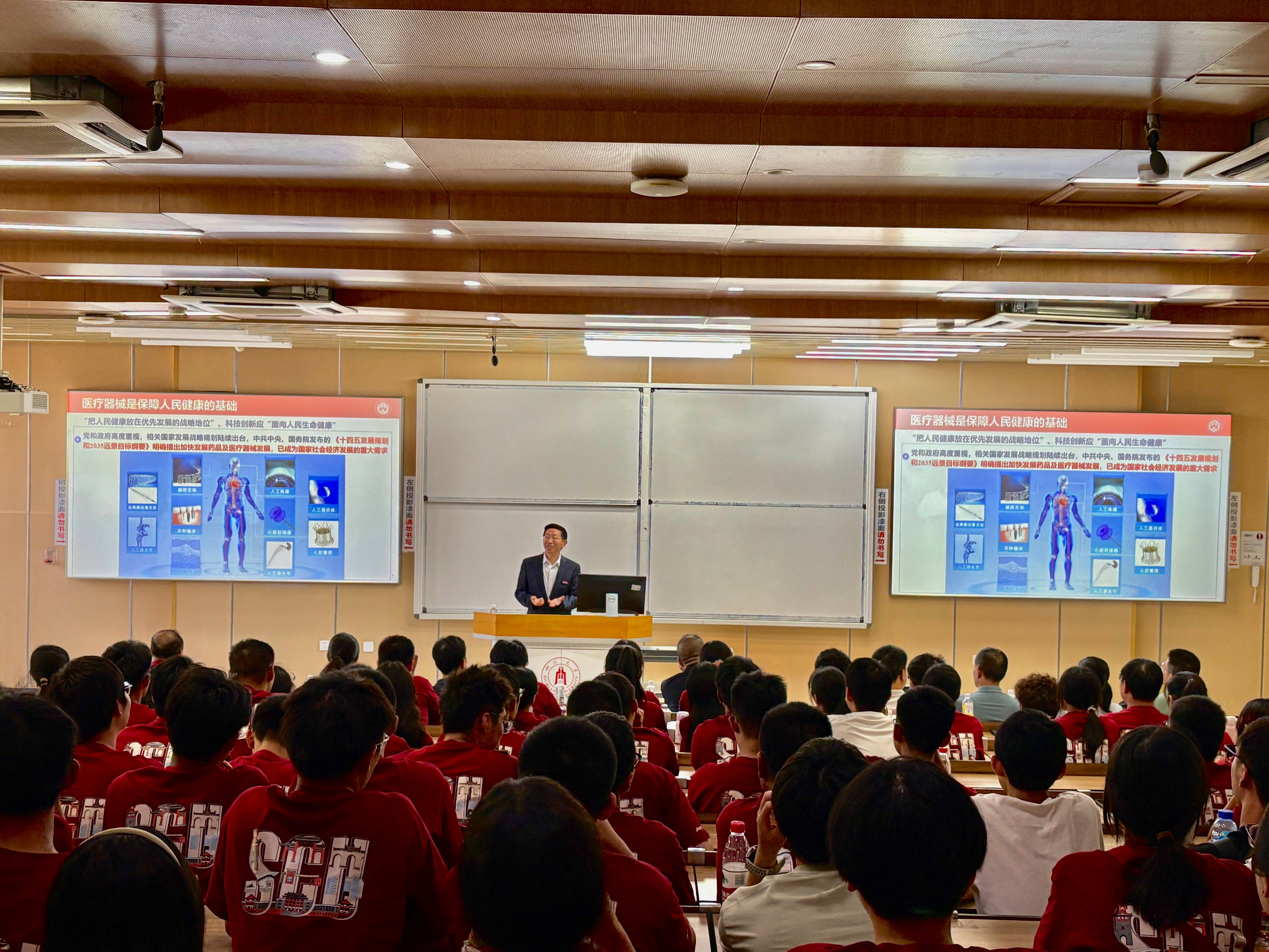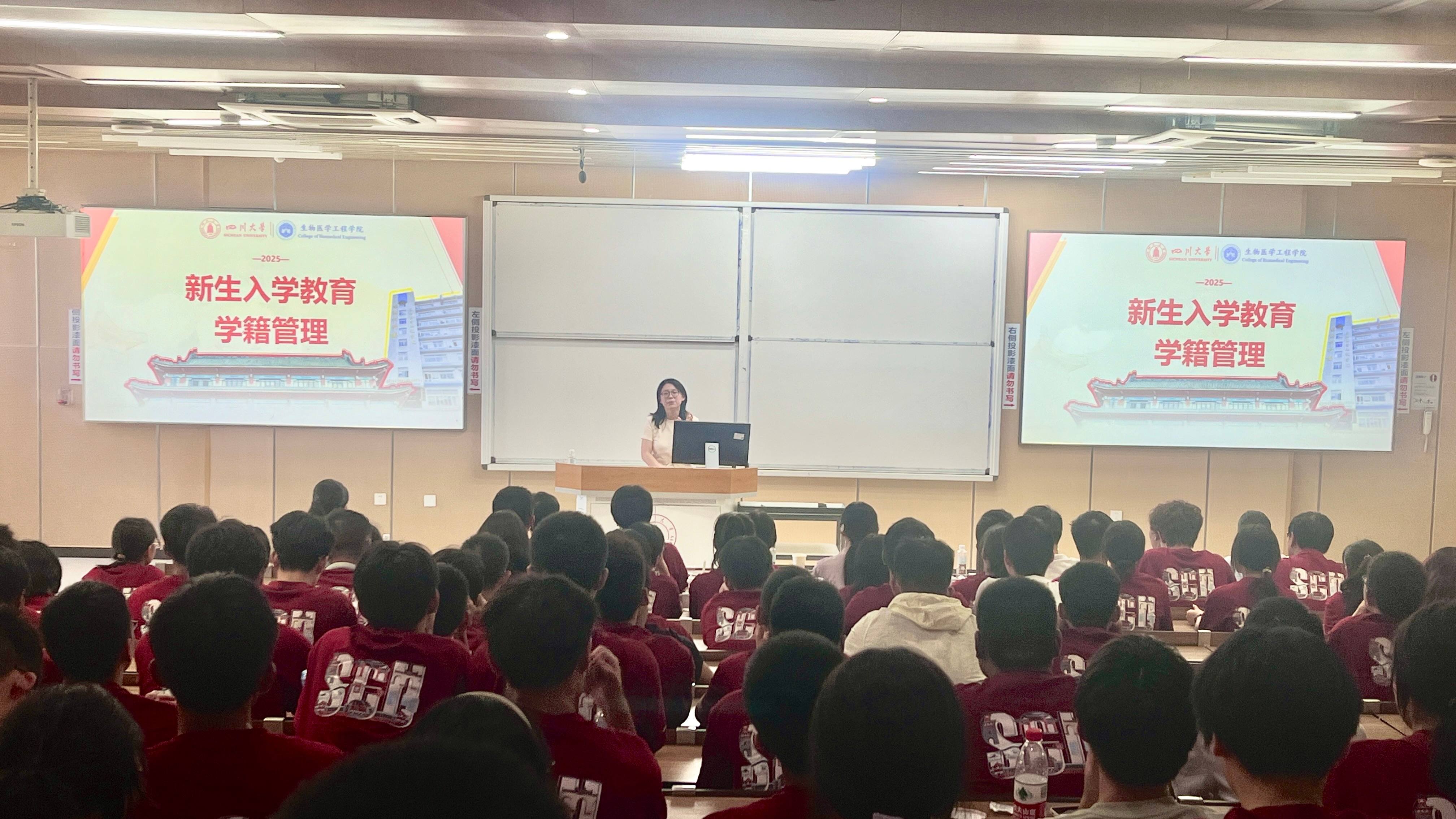 王云兵以“开启人生新阶段——做优秀川大生医人,助力健康中国战略发展”为主题为新生上了开学第一课。 他先向新生们介绍了william威廉中文官网的深厚底蕴与生物医学工程学科的优势与研究成果,强调随着健康中国战略的推进,生物医学工程作为融合医学、工学、理学等多学科的前沿领域,正迎来前所未有的发展机遇。作为川大生医人,希望新生们能在大学阶段夯实专业基础、培养创新思维,未来在创新生物材料、智慧医疗系统等领域作出贡献。