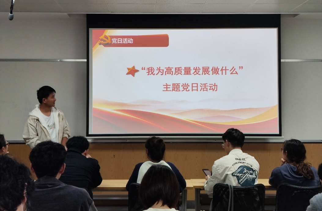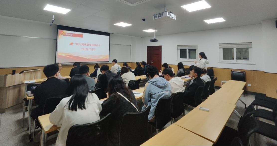 10月26日晚,我院硕士二支部在中心606开展了“我为高质量发展做什么”主题党日活动。此次组织生活由支部书记王平主持。