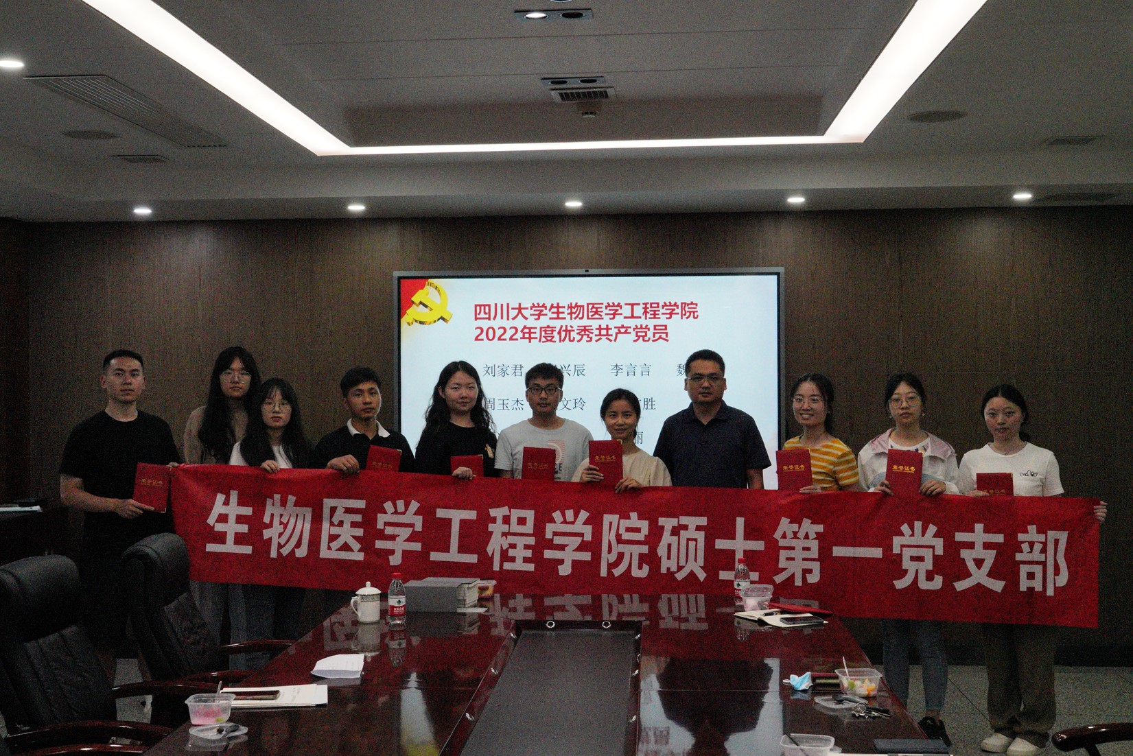 大会的最后进行了硕士一支部2022年度优秀党员颁奖仪式。经过民主评议,刘家君等11名同志被授予“williamhill英国官网2022年度优秀共产党员”荣誉称号。支部书记李向锋同志为获奖同志颁发荣誉证书并合影留念,并鼓励支部党员向优秀党员看齐,支部全体党员都应当在各自岗位充分发挥党员先锋模范作用,踔厉奋发,勇毅前行。